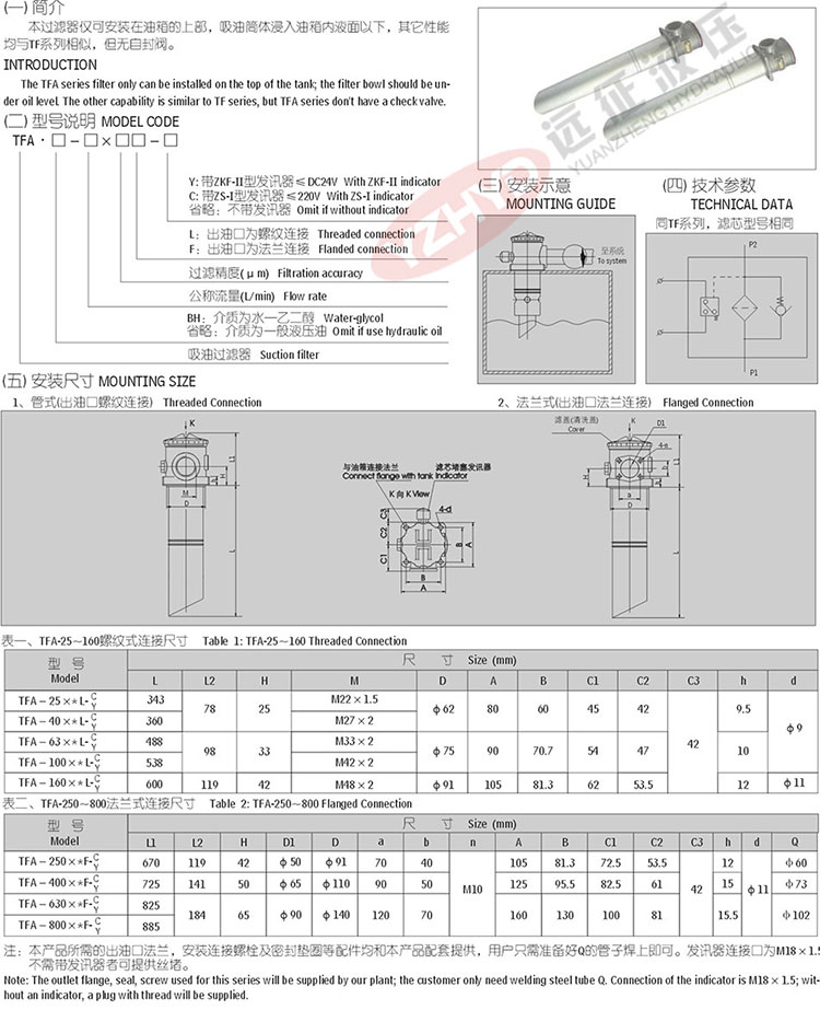 液壓過濾器廠家介紹TFA系列吸油過濾器(新型)